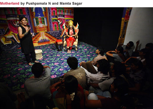 Artist Pushpamala N and Kannada poet Mamta Sagar explore the idea of freedom and captivity through the work of the first Kannada woman writer and Nationalist, Nanjangud Thirumalamba. The half-hour performance lies between performance art, theatre and literary monologue.